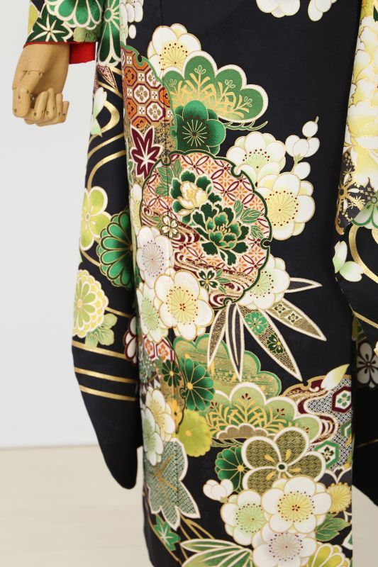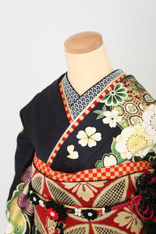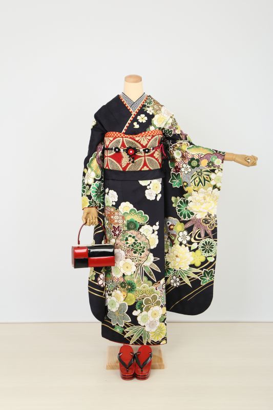 成人式振袖フルセット 古典 黒 深緑 ネオジャパネスク