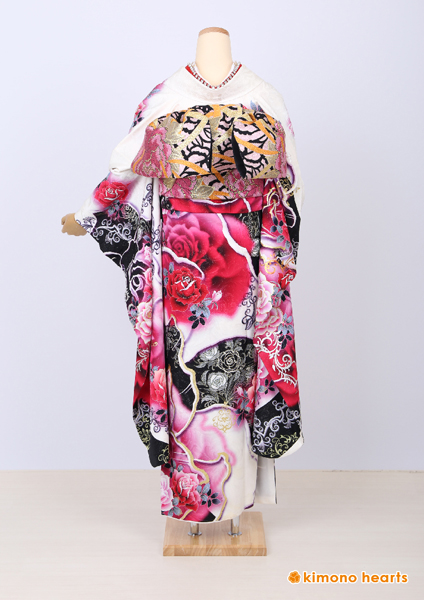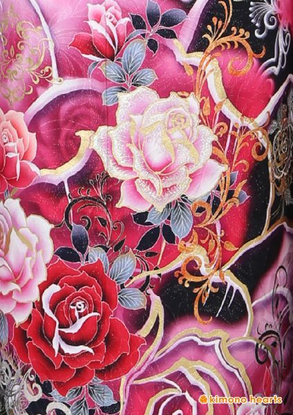 金彩で大胆に描かれた薔薇が情熱的。小物はキラキラを散りばめてさらにゴージャス感アップ。