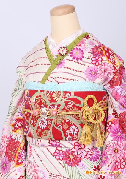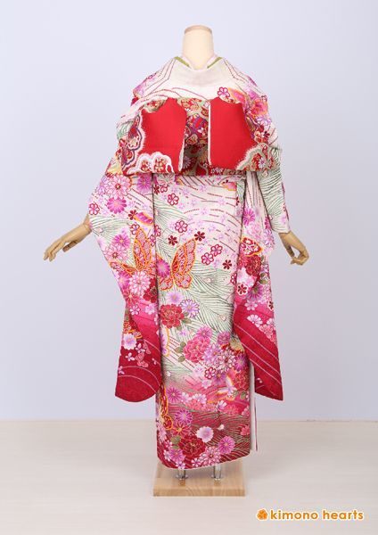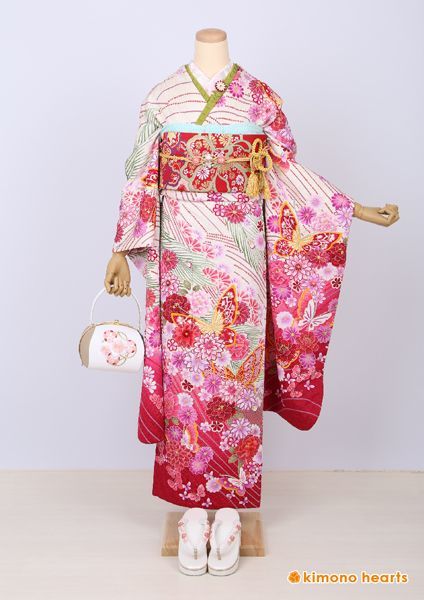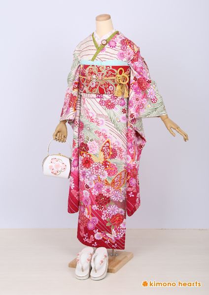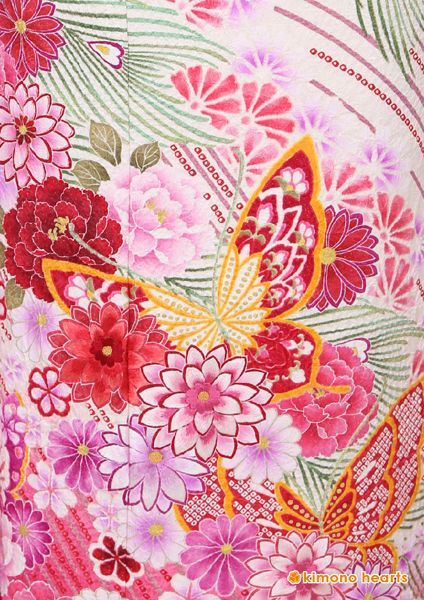 【ゆいはた陽炎】総絞りですべてが職人さんの手作業による逸品振袖。絞りの本場、新潟県十日町で作られています。白地で上品さがあり、裾にむかって赤ピンクのグラデーションで可愛く仕上がります。