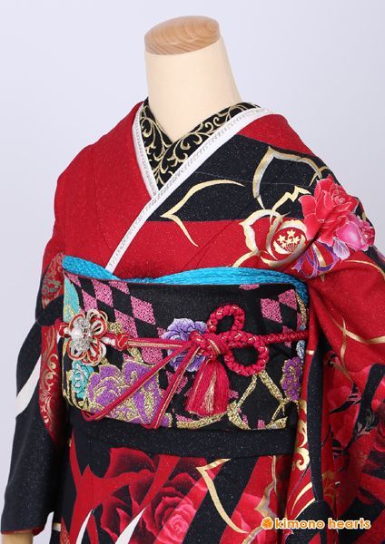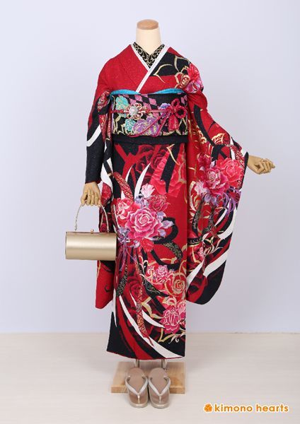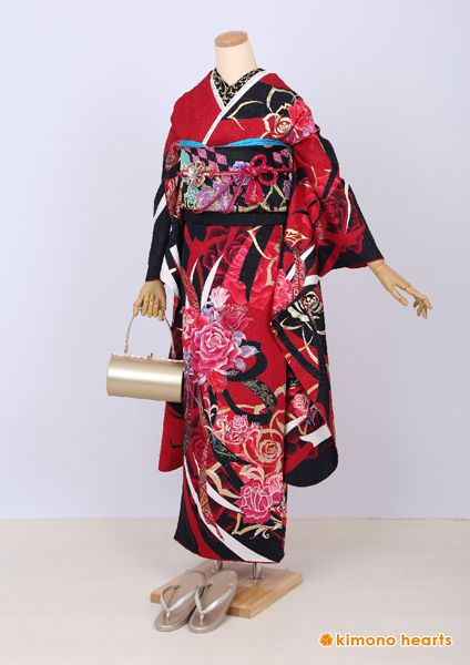 振袖 フルセット レンタル グラマラス 派手 赤黒 大柄