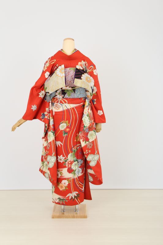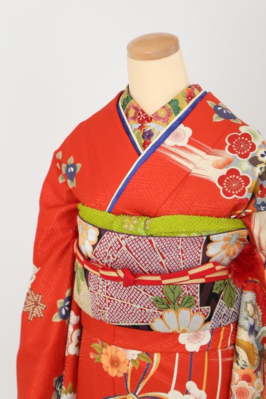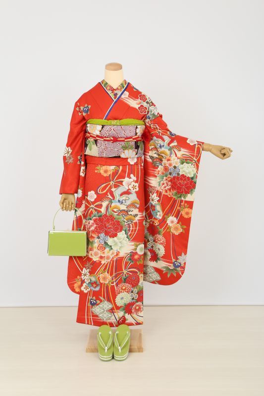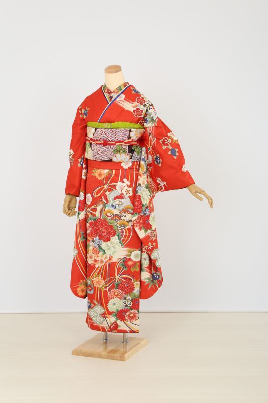 成人式振袖フルセット レトロ古典 オレンジ 花くす玉 橘 きもの道楽