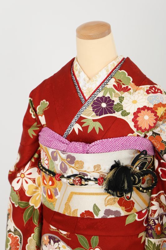 成人式振袖フルセット 伝統古典 赤 金彩 桜