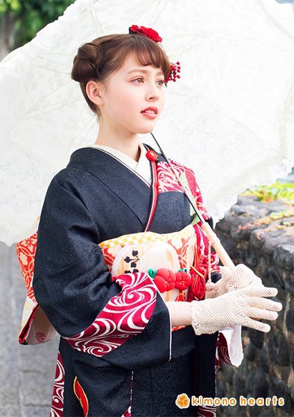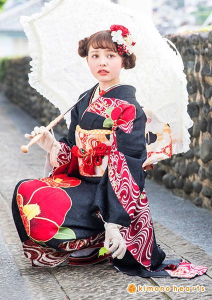 振袖 フルセット ノスタルジック 大正ロマン 黒 【椿】 成人式