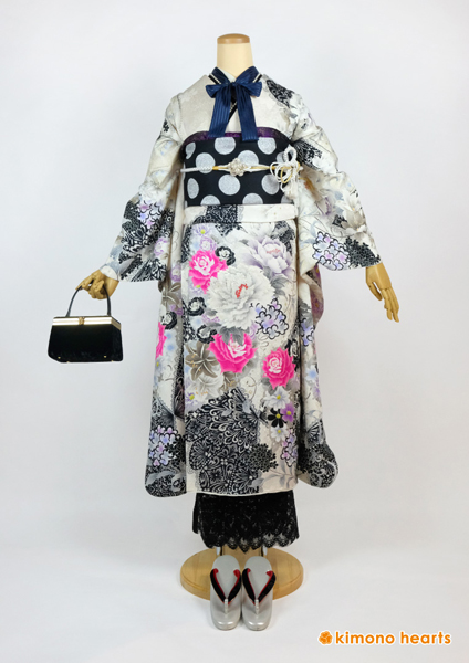 振袖 フルセット レンタル ゴシック 白黒 レース リボン