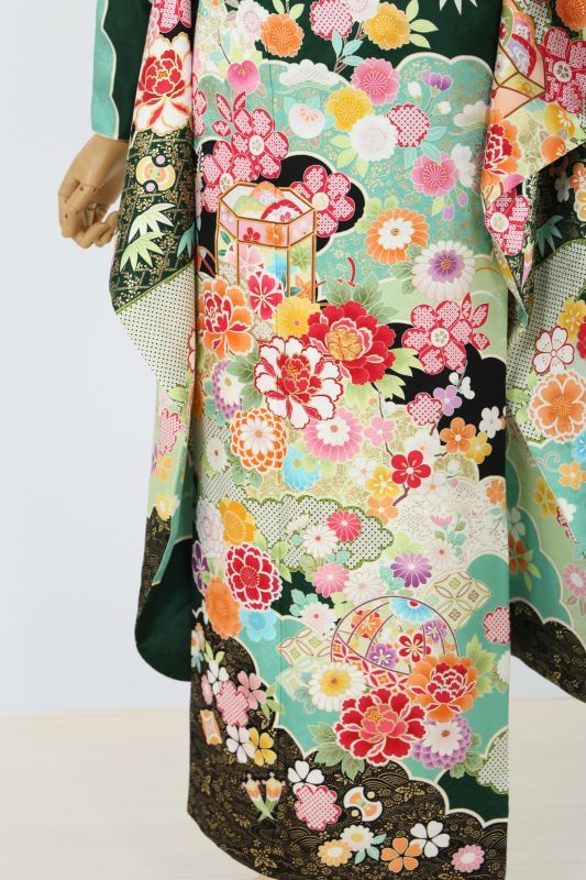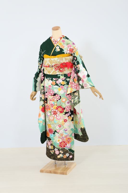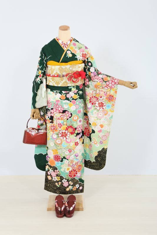 成人式振袖フルセット レンタル 伝統古典 緑 小花