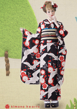 振袖 フルセット レトロモダン 【白鶴に深紅の梅柄振袖】