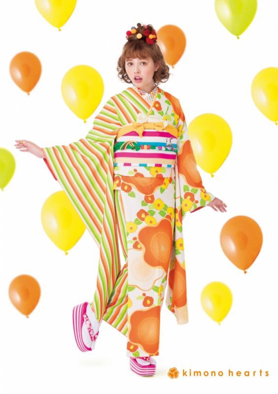 振袖 フルセット レトロモダン キモノハーツオリジナル【椿/縞】 成人式