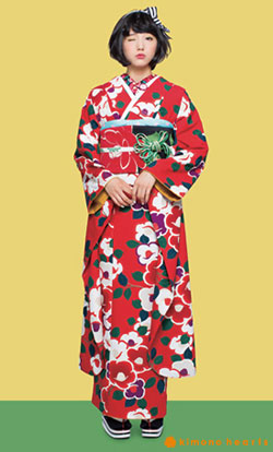 成人式用 振袖フルセット レトロポップ【イノセントな少女風椿柄振袖】