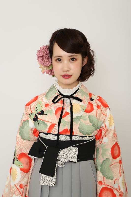 卒業式 袴セット 二尺袖 レンタル 大正ロマン 九重 オレンジ レース