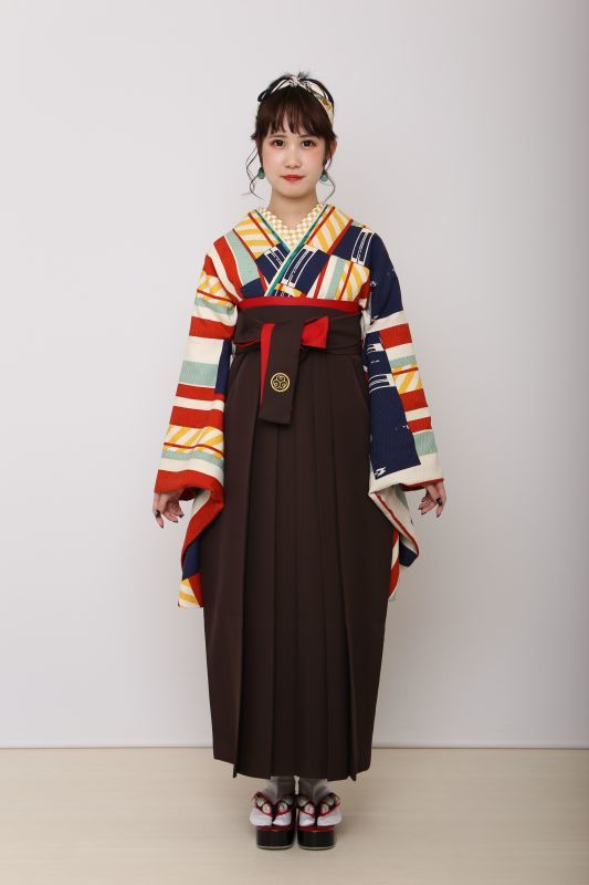 茶色の袴はお紐が赤色で、お洒落になります。
