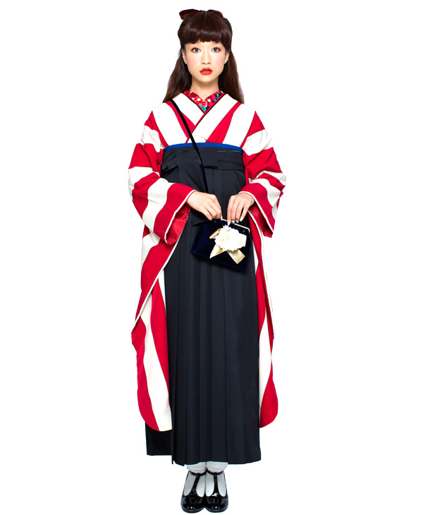 赤と白のストライプがシンプルながらしっかり主張してくれる袴セットです