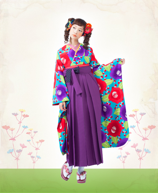 ポップでカラフルな椿柄の振袖は人気、和風館の振袖。